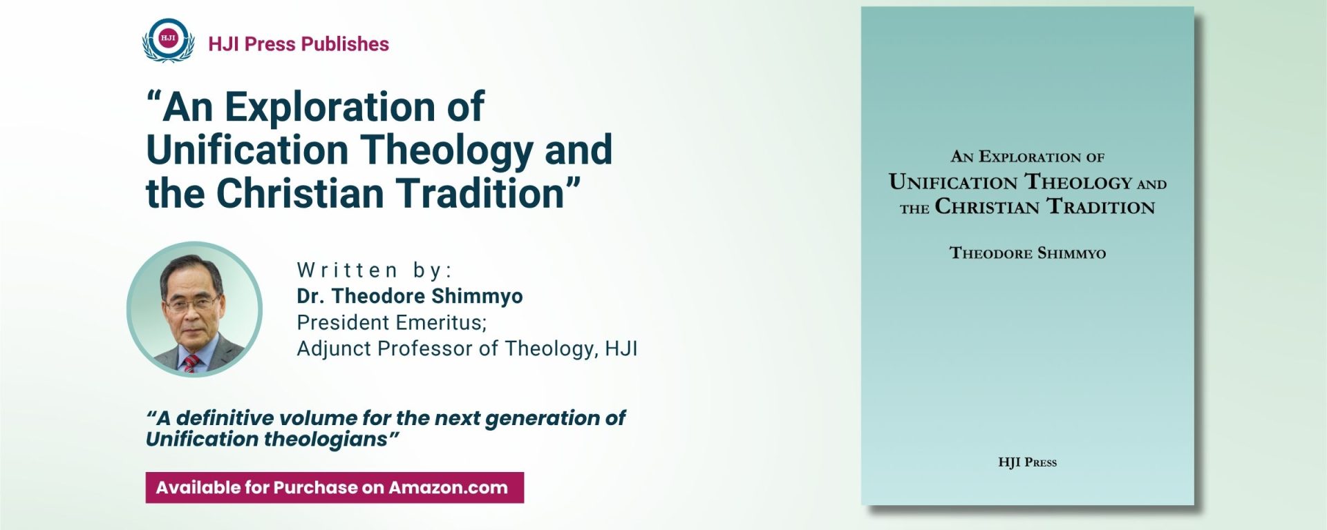 HJI is pleased to announce the publication the latest book by Dr. Theodore Shimmyo, HJI Adjunct Professor of Theology. Entitled An Exploration of Unification Theology and Christian Tradition and published by HJI Press, it bridges Unification and Christian theology, promoting deeper understanding and dialogue between the two faith traditions.