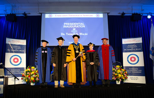 On Oct. 10, Dr. Thomas G. Walsh was inaugurated as the seventh president of the Unification Theological Seminary (UTS). With this new appointment from UTS co-founder, True Mother, he succeeds former UTS president and current provost, Dr. Thomas Ward.