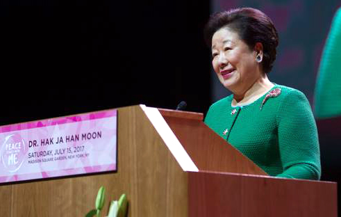 NEW YORK – Dr. Hak Ja Han Moon, co-founder of the Unification Theological Seminary (UTS) and leader of the worldwide Family Federation for World Peace and Unification (FFWPU) came to Madison Square Garden in New York City on Saturday, July 15, 2017 addressing a near-capacity crowd.