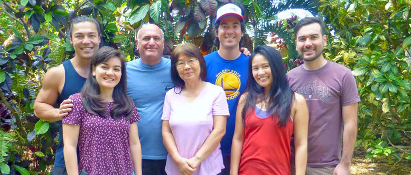Frumin family reunion in Kona, Hawaii. From left: Katsunori Kuwahara, Corinna (Frumin) Kuwahara, Chuck Frumin, Mayumi Frumin, Kanoa Frumin, Yonji Kim, Joshua Frumin.