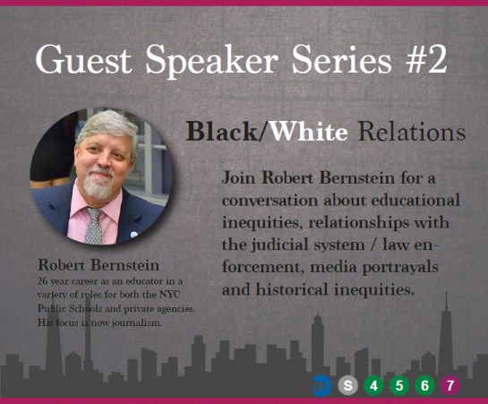On November 30, just before the conclusion of the Fall 2016 semester, Mr. Robert Bernstein, journalist and former educator and administrator in the New York City public school system, gave a talk at the UTS Manhattan extension center on the theme “Black/White Relations” in the United States.