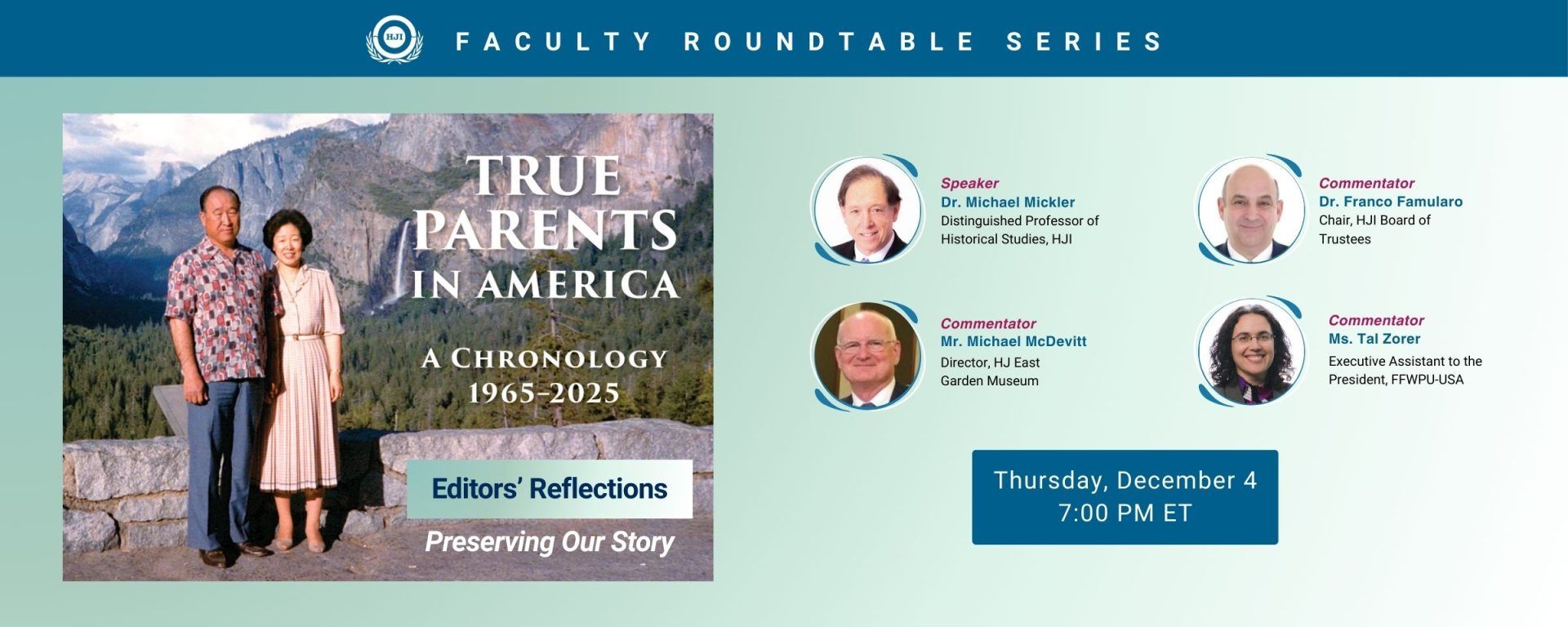 December 22, 2025 Faculty Roundtable “True Parents in America: A Chronology, 1965-2025” HJI held its Faculty Roundtable Series on Thursday, December 4, and featured Distinguished Professor of Historical Studies at HJI, Dr. Michael Mickler as he shared with us his work and […]
