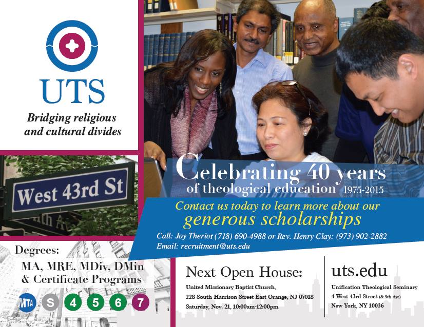 November 18, 2015 40/40 Campaign November Update September 20, 2015 was the 40 year anniversary of the Unification Theological Seminary (UTS) opening convocation, which was also on September 20, but in 1975! An abbreviated film of that […]
