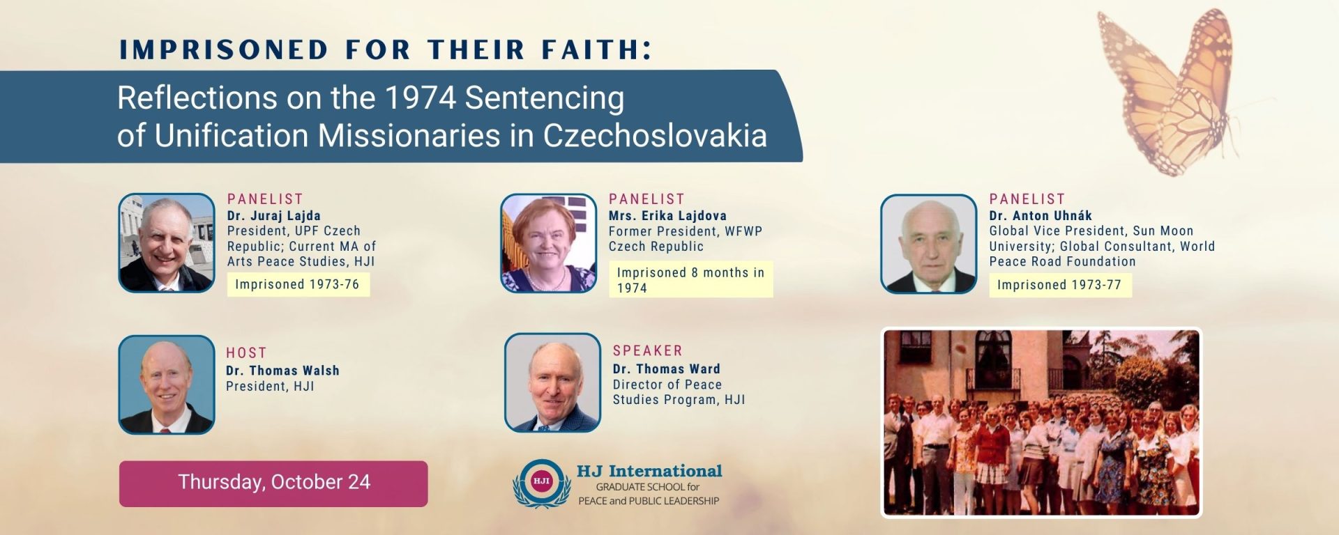November 27, 2024 Imprisoned for Their Faith: Reflections on the 1974 Sentencing of Unification Missionaries in Czechoslovakia On October 24, HJI held a webinar in special remembrance of the 50th anniversary of the 1974 imprisonment of Unification missionaries in Czechoslovakia. Three representatives of this courageous group of […]