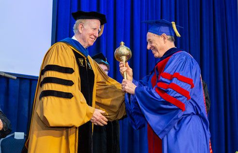 Following the conferring of degrees and the graduate responses, ten students and five faculty and honorary recipients were inducted into Theta Alpha Kappa, the national honors society for the field of religious studies.