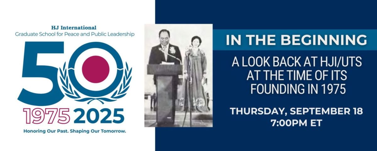 HJ International Graduate School for Peace and Public Leadership hosted a special webinar honoring the 50th anniversary of the inauguration of the founding of our institution (formerly Unification Theological Seminary) in September of 1975.