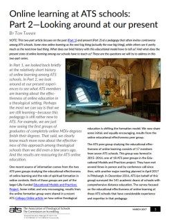 In Part 2, we look around at our present experiences to see what ATS members are learning about the effectiveness of online education in a theological setting. Perhaps the most we can say is that we are still learning—because this pedagogy is still rather new to ATS. For example, we are just now seeing the first groups of graduates of completely online MDiv degrees finish their degrees. That said, we clearly know much more now about the effectiveness of this approach among theological schools than we did even a few years ago. And the results are reassuring for ATS online education.