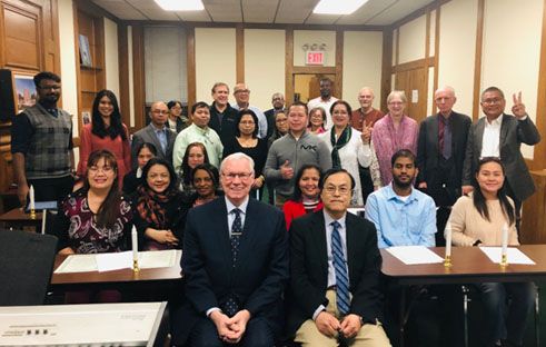 Two students gave responses: Bishop Rene Ballenas and Regina Talja. Ballenas is a Master of Divinity student and a Seventh Day Adventist pastor. He asked all of the UTS students to become UTS “ambassadors” and to each bring one student to study at UTS. He was followed by Talja a Master of Arts student, who compared her discovery of UTS to finding an “oasis in the desert” which moved, inspired, and strengthened her life of faith.