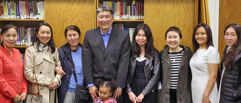 Photo: (center) Mr. Naran Badushov, founder and president of the Tulip Foundation, posing with attendees on March 29, 2017.