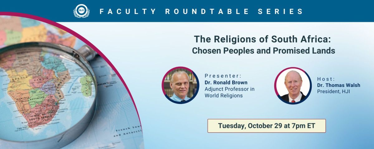 On October 29, a Faculty Roundtable was held with Dr. Ronald Brown, Adjunct Professor in World Religions, entitled “The Religions of South Africa: Chosen People and Promised Lands.” The event was hosted by Dr. Thomas Walsh, President. Mika Deshotel, Associate Dean of Student Life, gave welcoming and closing remarks.
