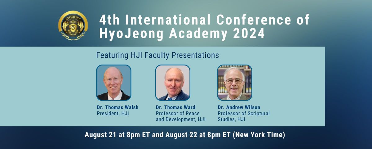 Each year the International Conference of the HyoJeong Academy invites all areas of research to contribute to a world of Co-existence, Co-prosperity, and Co-righteousness. Research into God-centered perspectives that seek to unify religion and science are warmly welcomed. This year, three distinguished HJI faculty will present at the 4th annual conference: